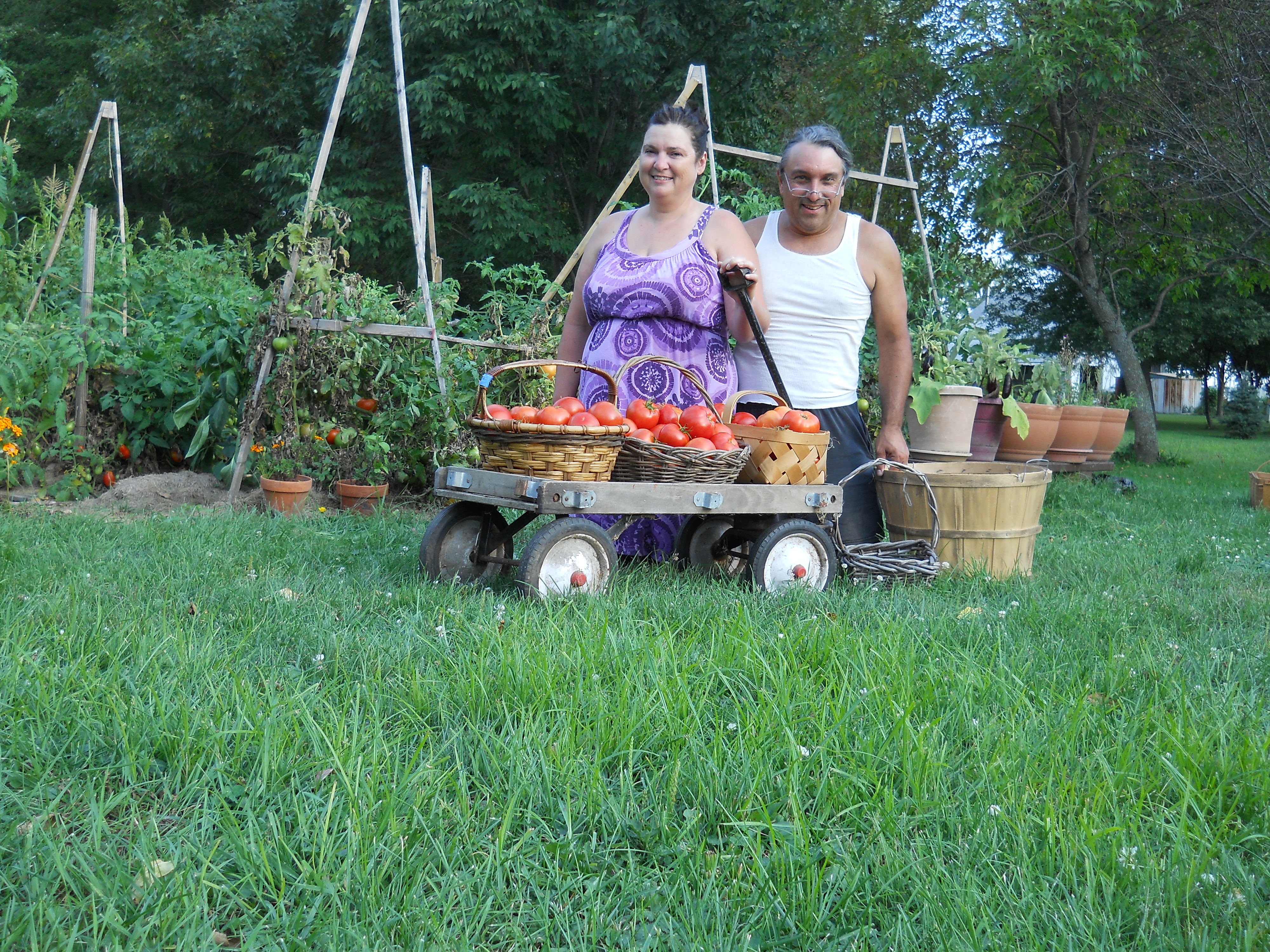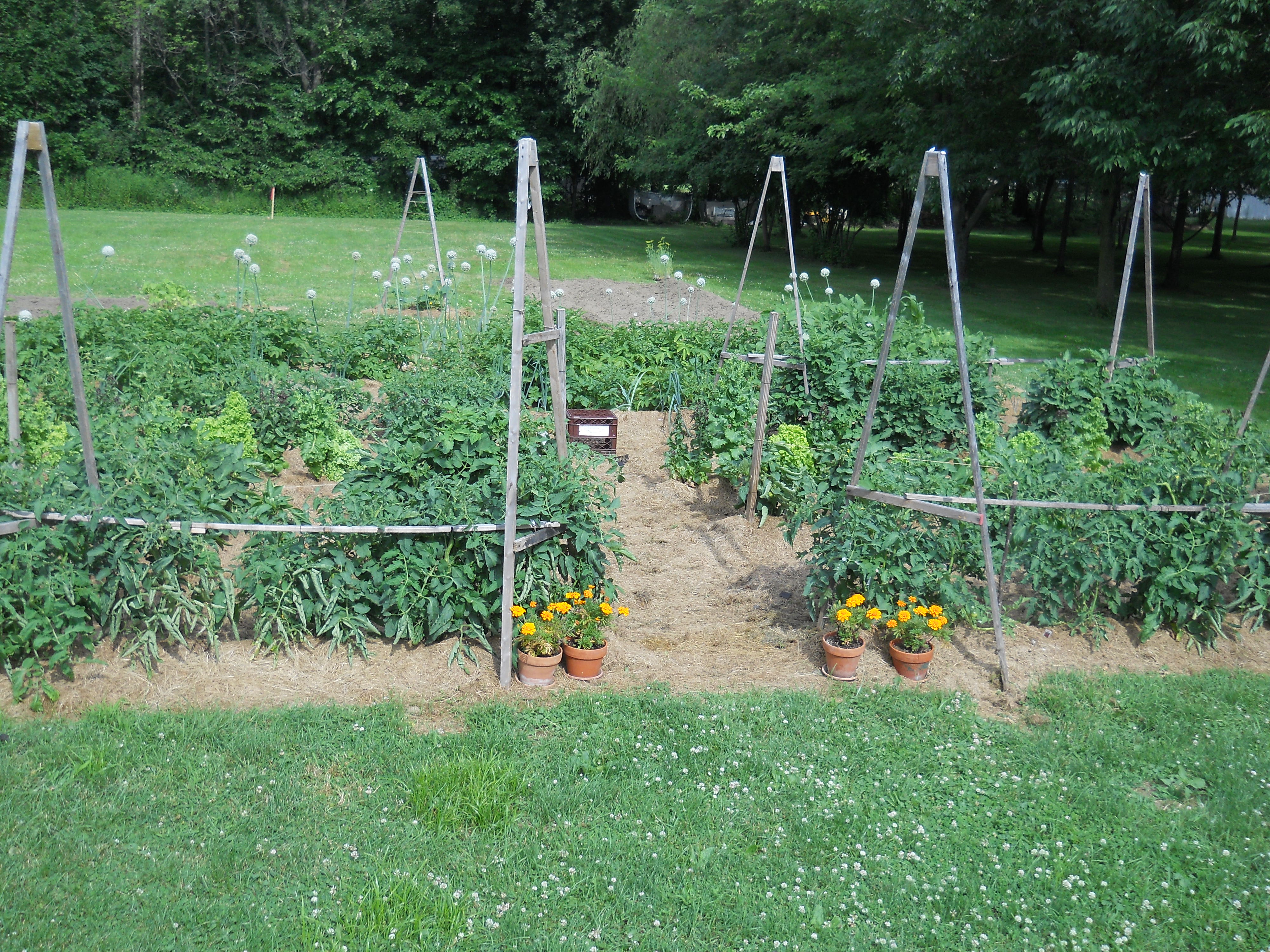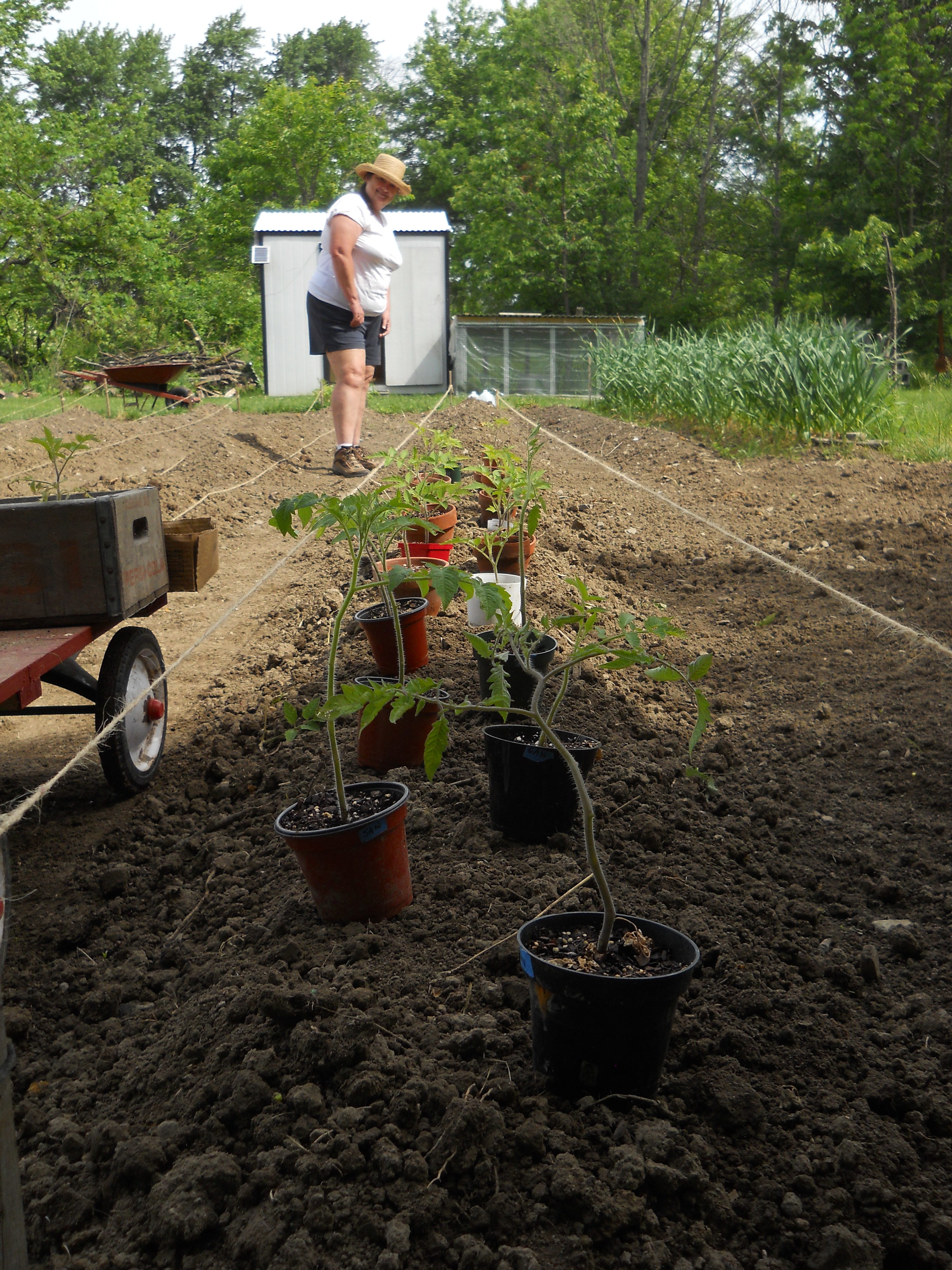 The tomatoes are doing well, but they are also stubby this year. Just today we started seeing some turning ripe. More on them as they start coming in.