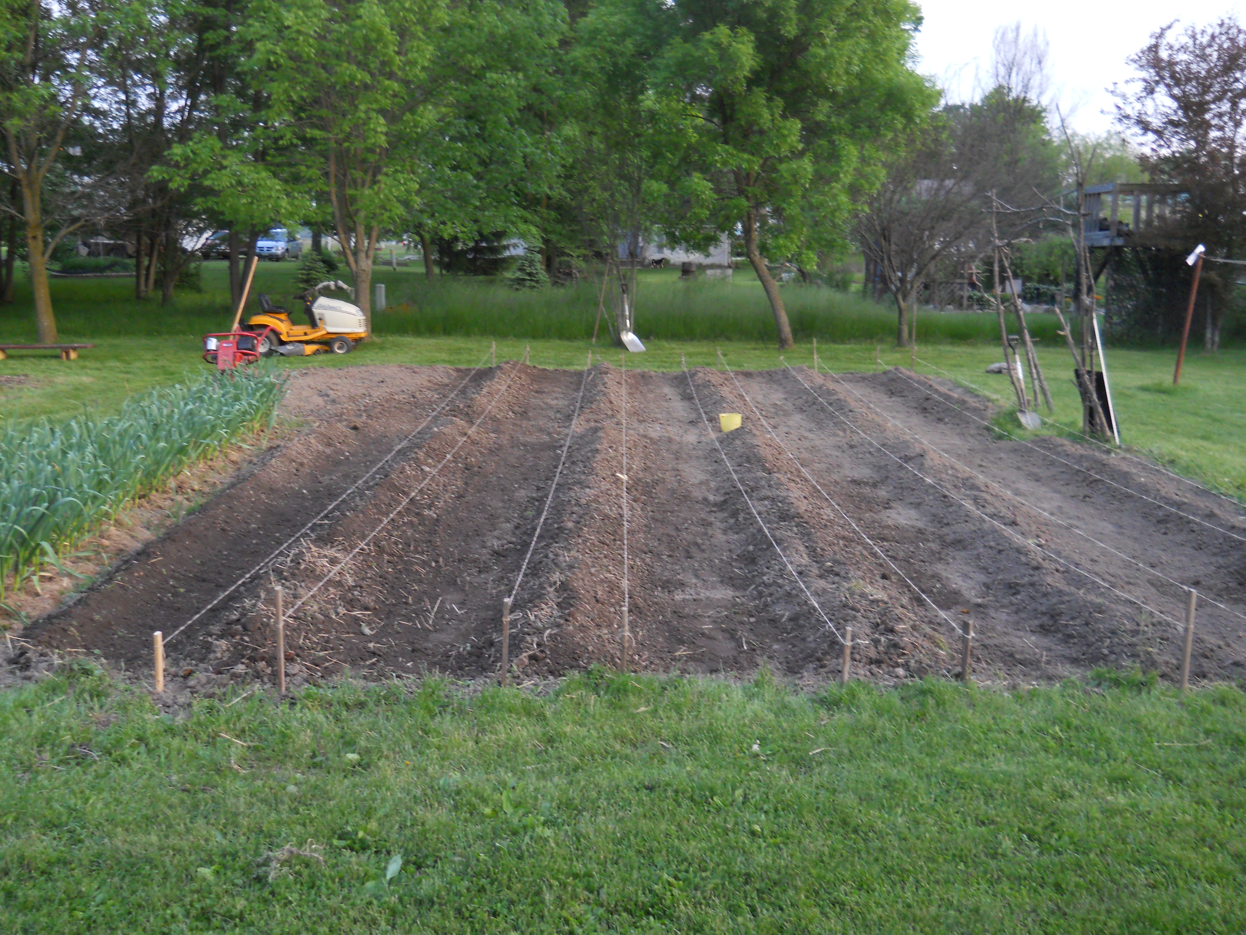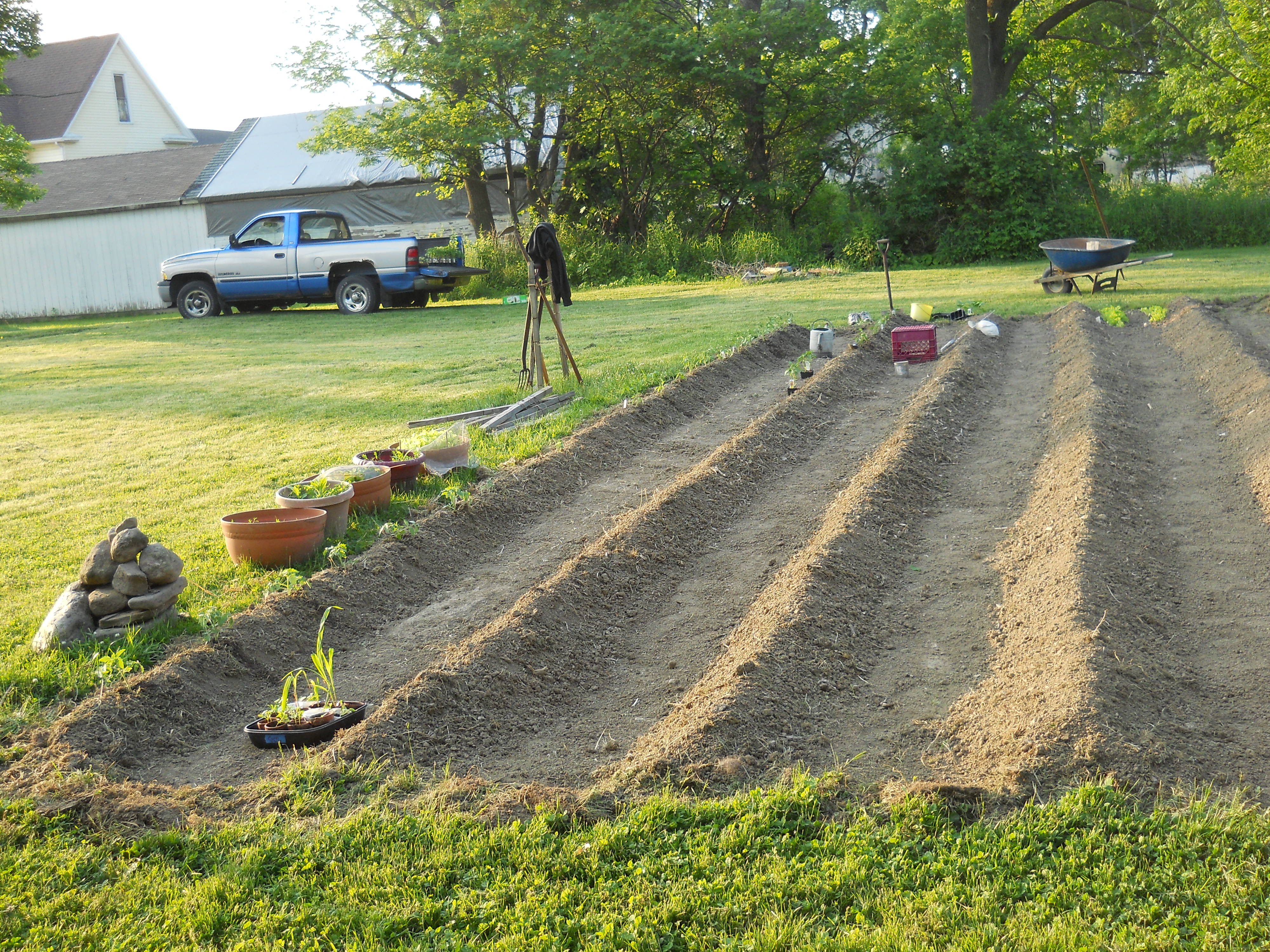 We should be harvesting when only 2 or 3 leaves die back. Each leaf corresponds to a paper layer over the garlic bulb that helps to protect it for long storage. That explains why our garlic has such thin skin. Next year! On a brighter note, the garlic was still the best looking and largest we have ever grown in all the years we have grown it. I believe it mostly attributable to careful soil prep- LOTS of organic material and tilling. We harvested about 300 head.