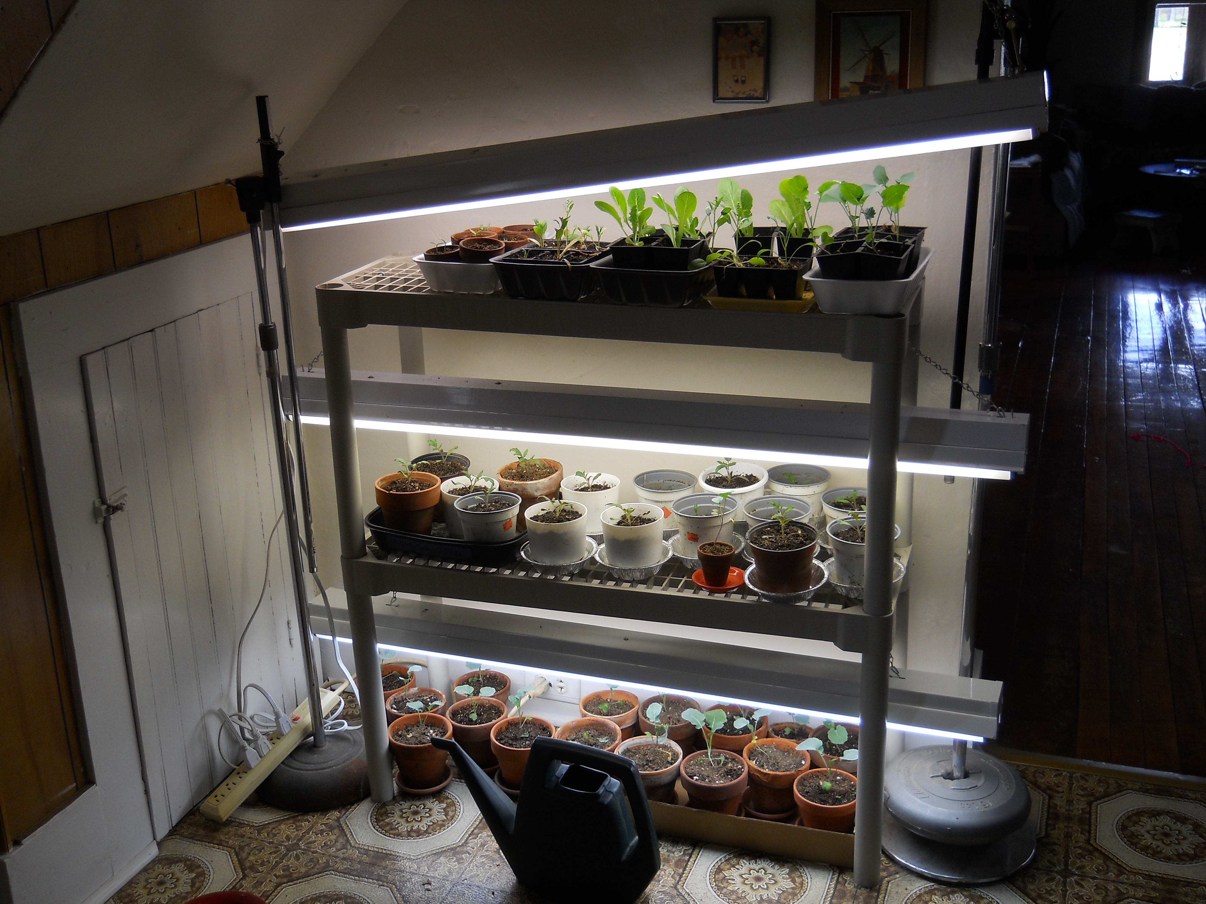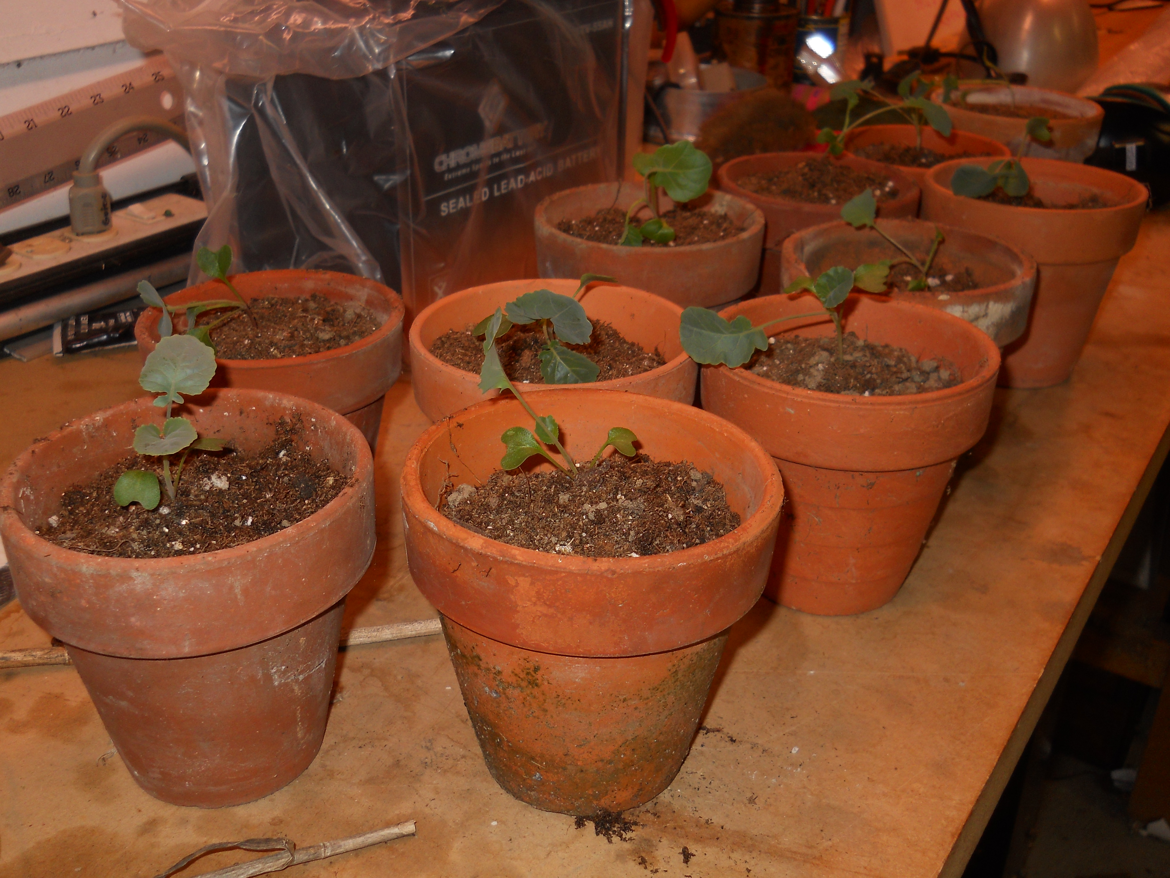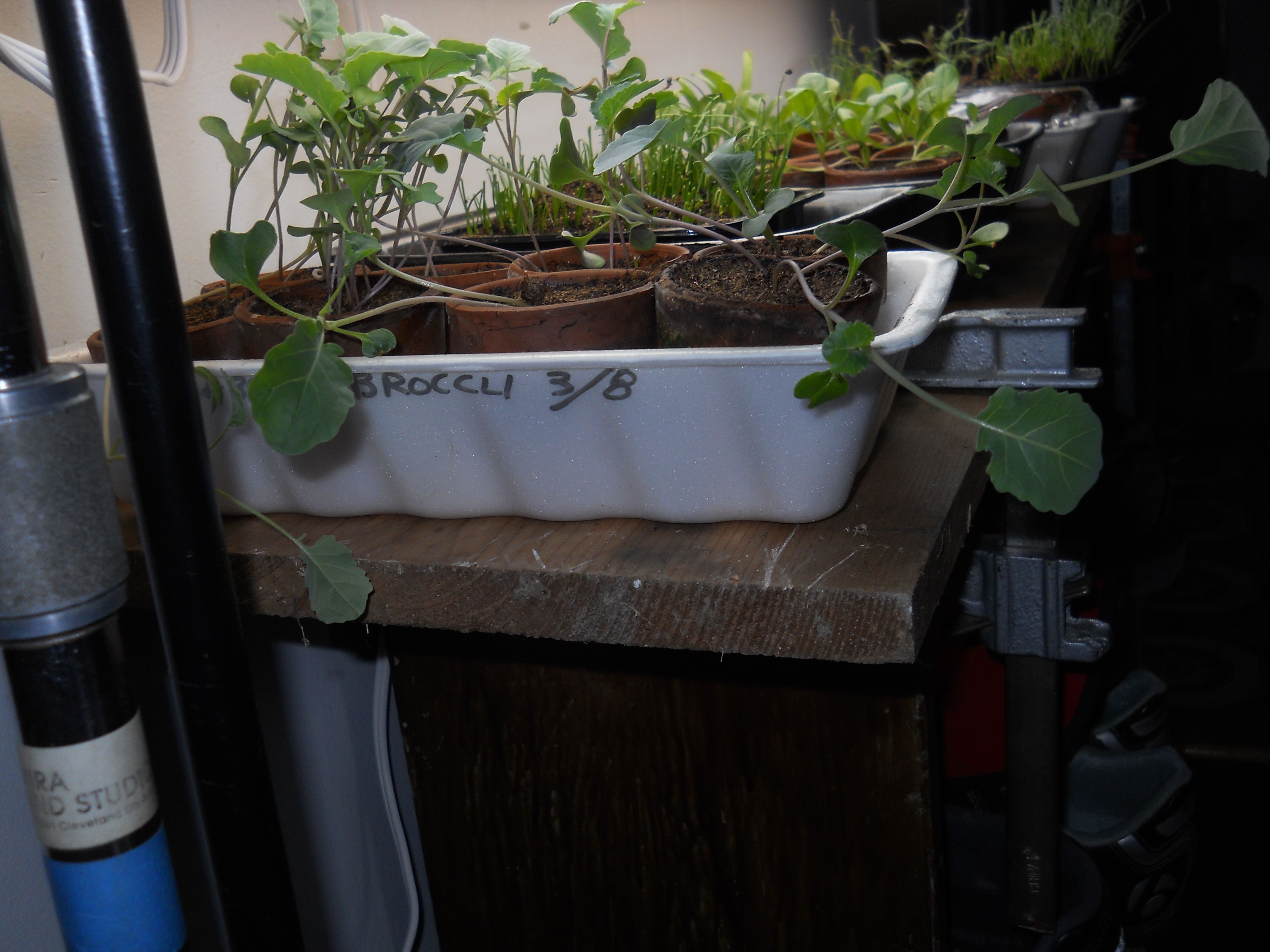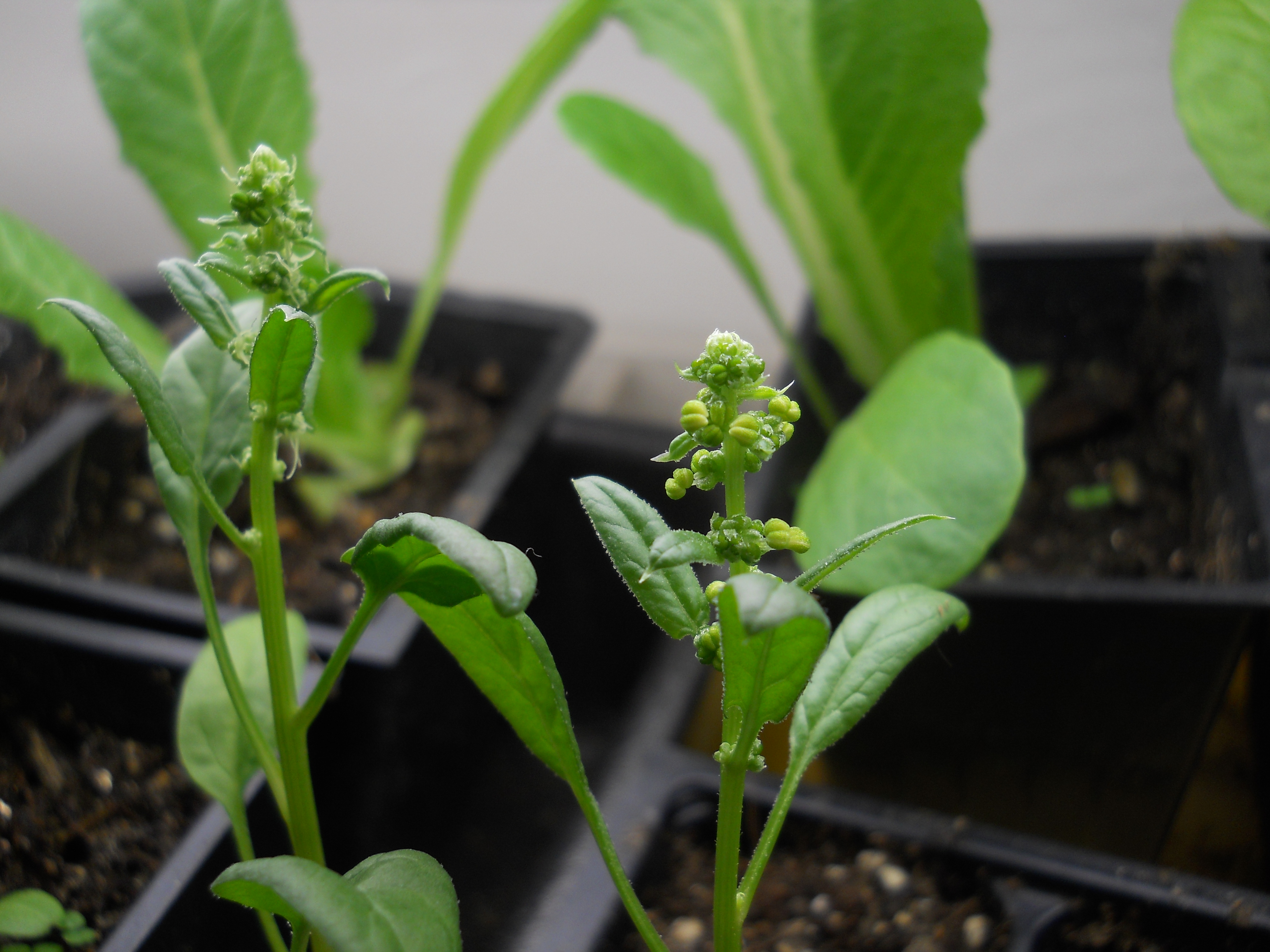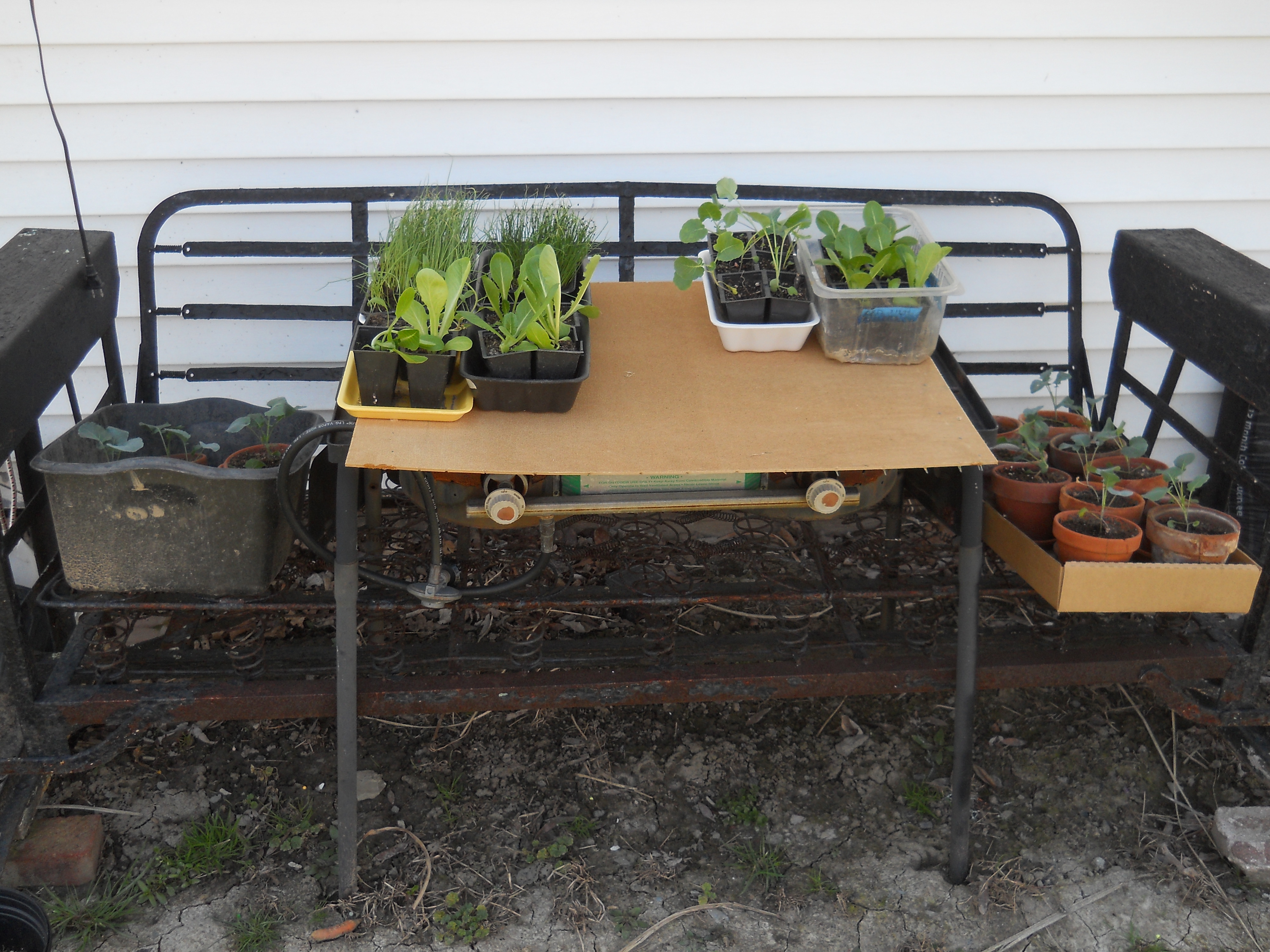 Our lettuce produced for a really long time. It finally bolted around the 4th of July and our replacement lettuce wasn’t ready yet. Its just about ready now. Our farm cat Bebe has been very, um… efficient… at taking care of the rabbits that dared to sample the lettuce 😉