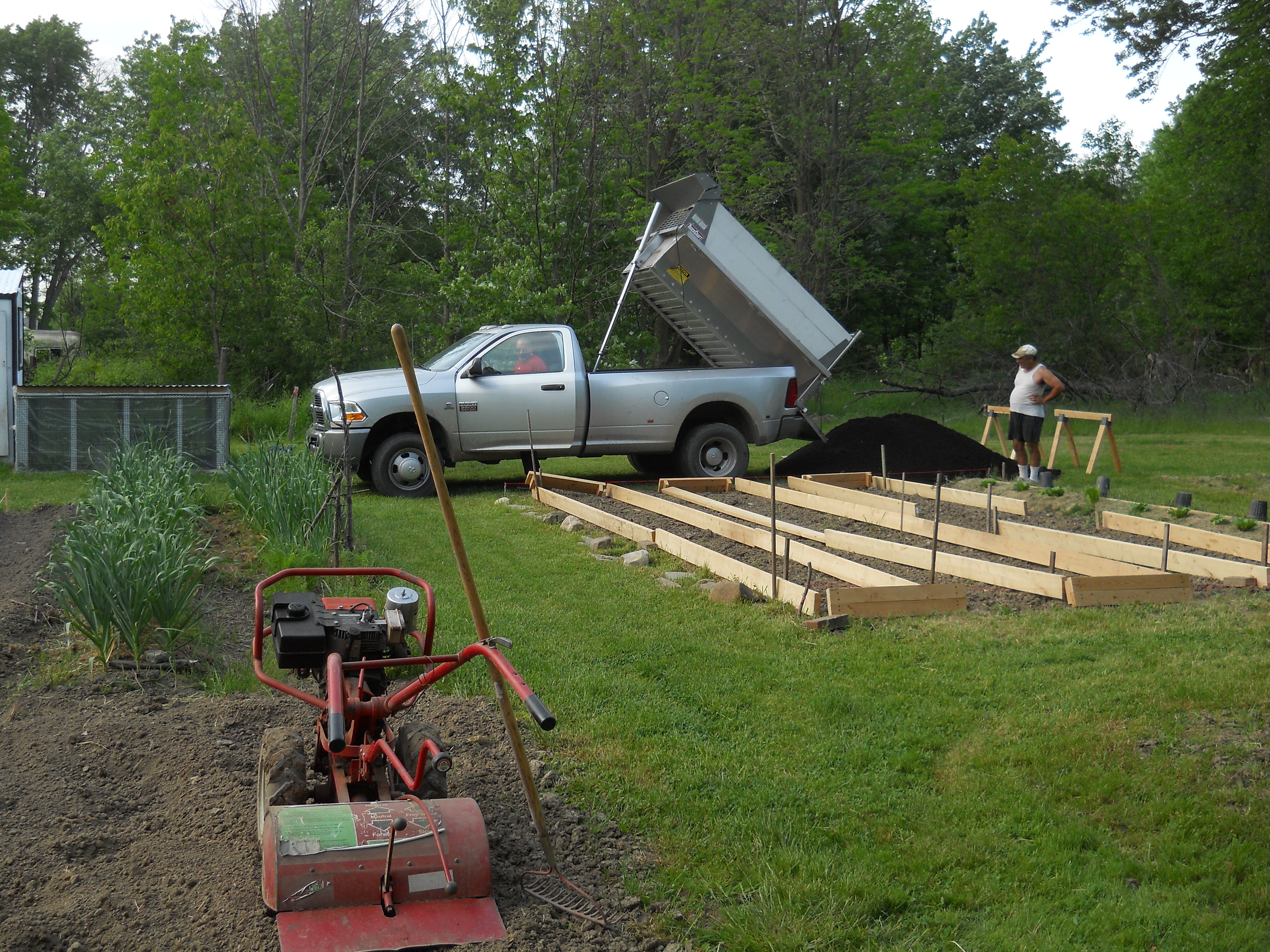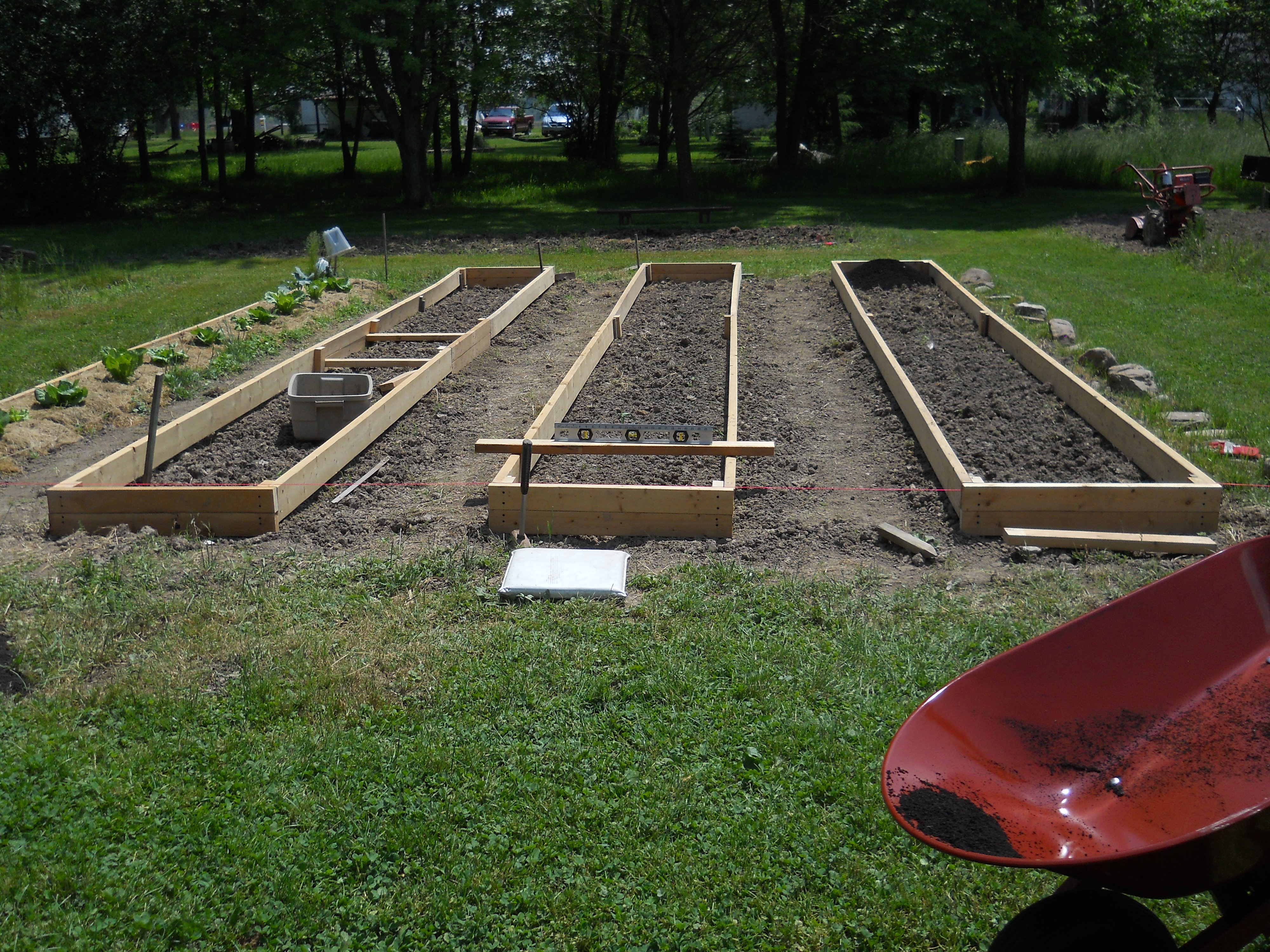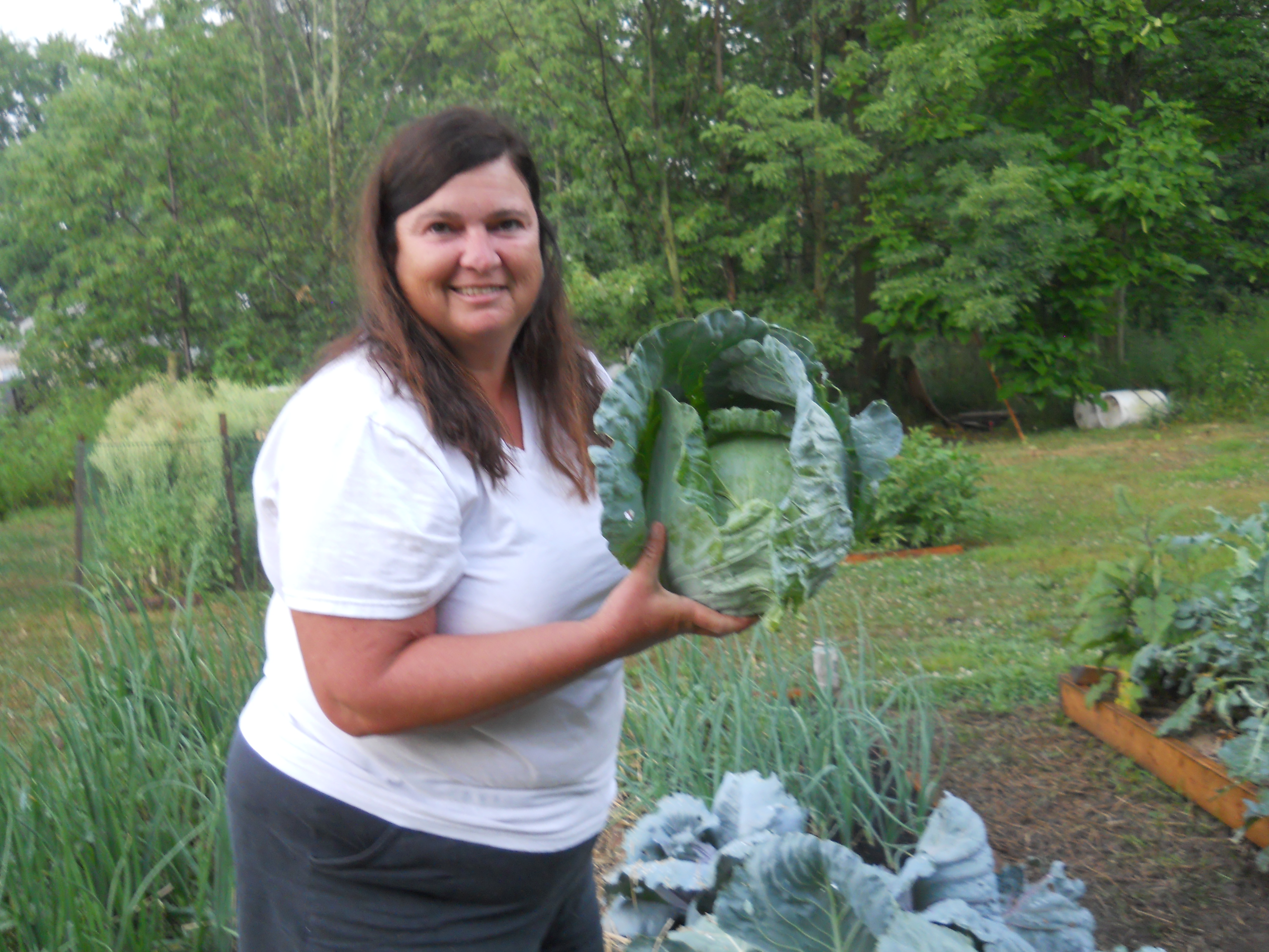 So far this year has been very dry. Hardly any rain. Our new raised beds are working very well and producing heavily. As I write this Carolyn is processing a few 5-7lb heads (weight before processing – 3 white) of cabbage into sauerkraut from the raised beds. Bonus- the chickens really love eating the cabbage leaf scraps, raw or boiled.