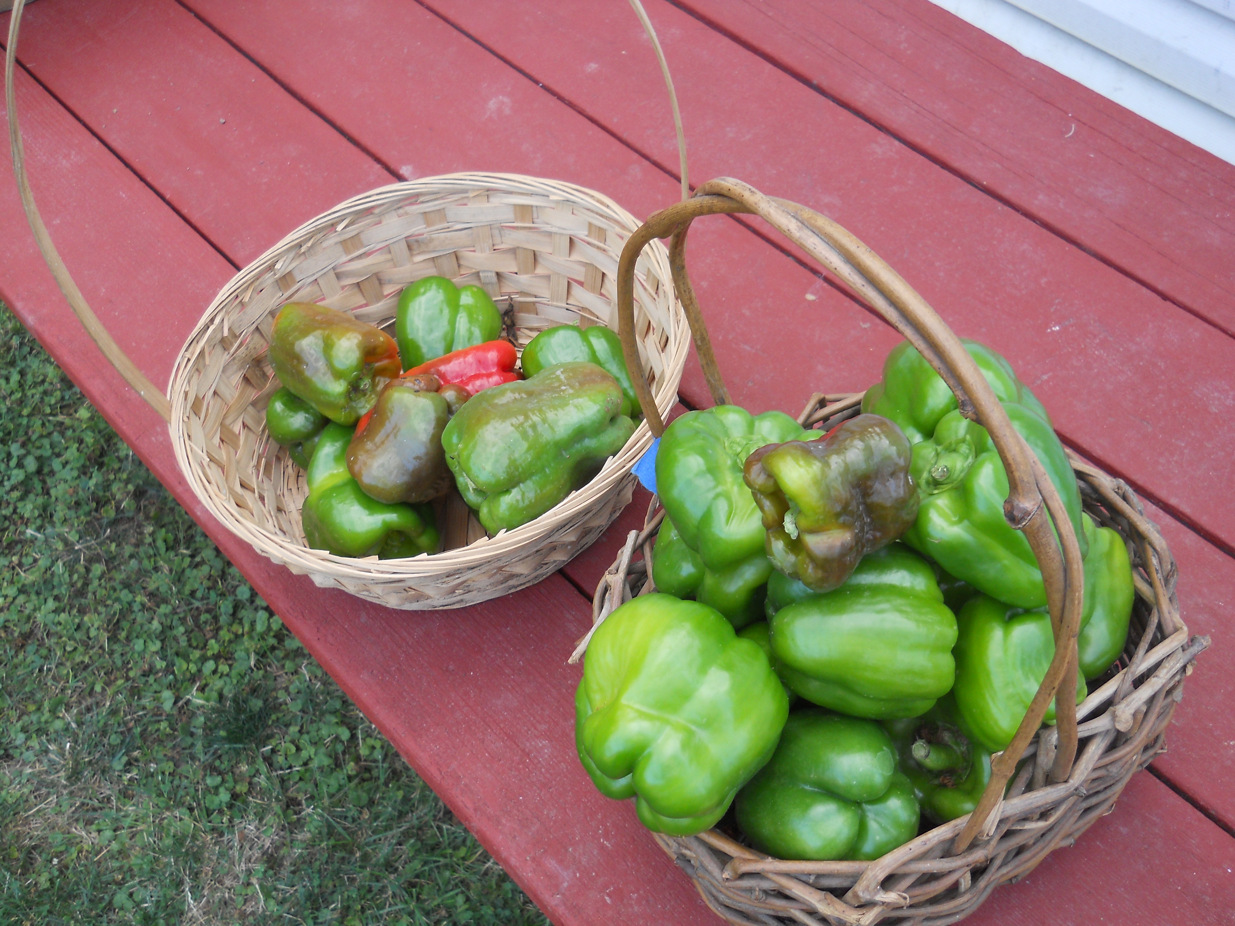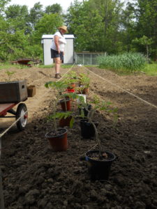 We also harvested a few peppers. With such little rain, all of our plants have been stunted in height, despite my regular nightly 2 hour waterings. To help the plants out, we took all the fruit from the bell pepper plants ( 9 pounds) and roasted them and made a really sweet pasta meat sauce. We also side dressed with Carolyn’s home made organic fertilizer 5 10 10.
