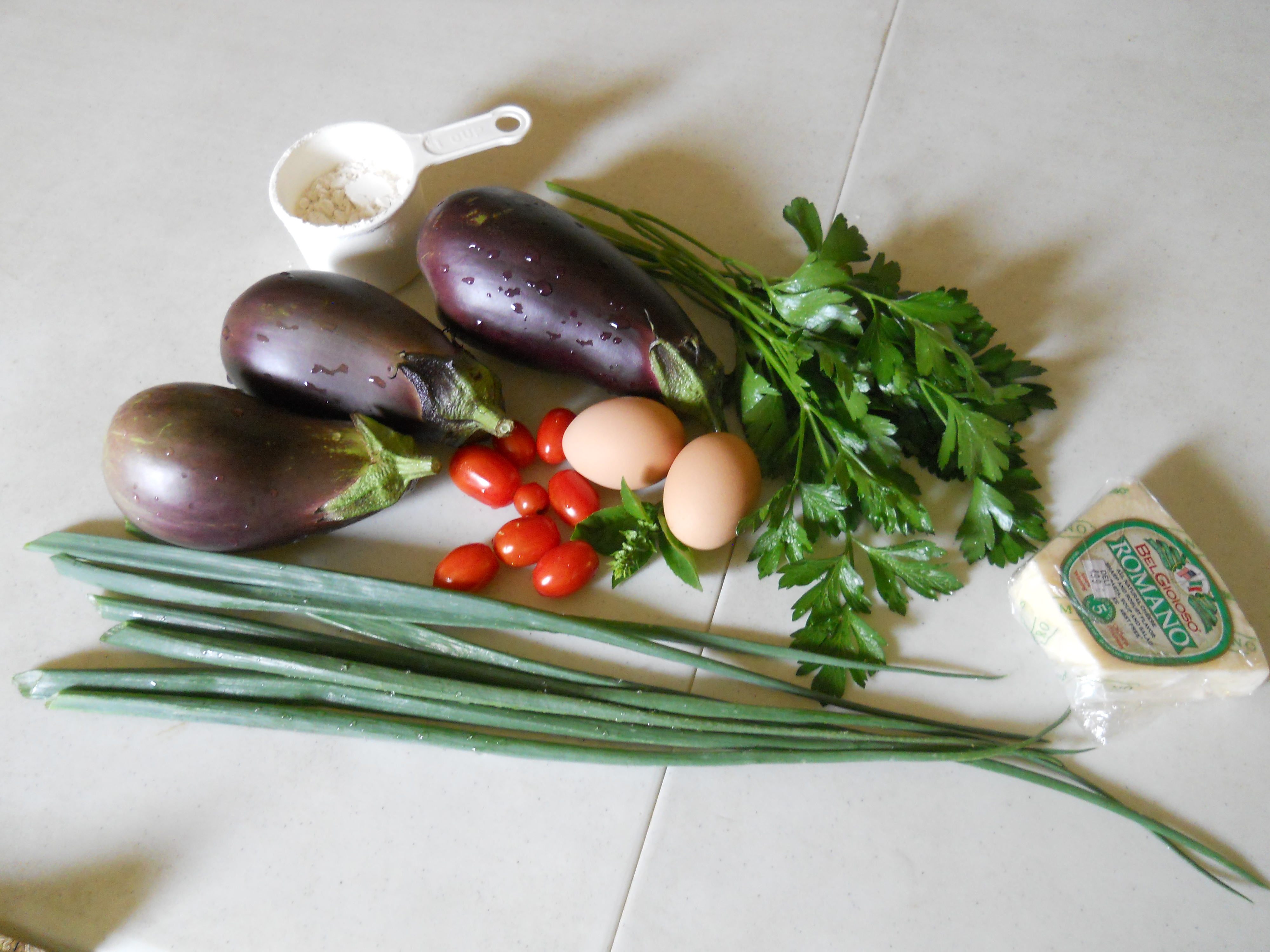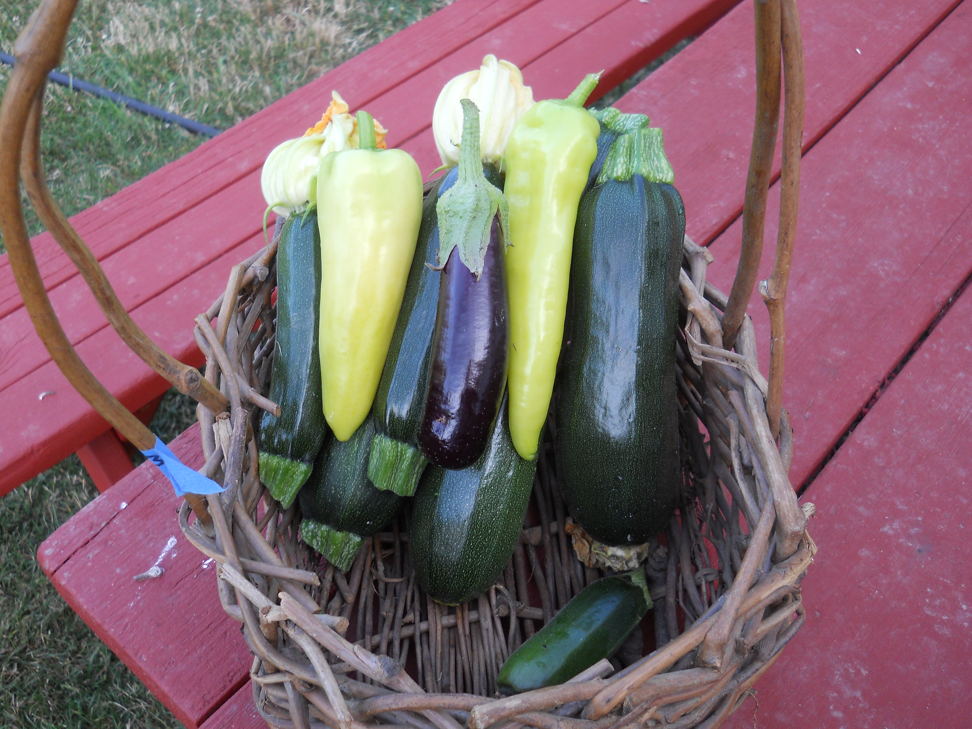 We have been eating a lot of eggplant and zucchini- eggplant & zucchini fritters, zucchini muffins etc. We have regular eggplant and fingerling eggplant.