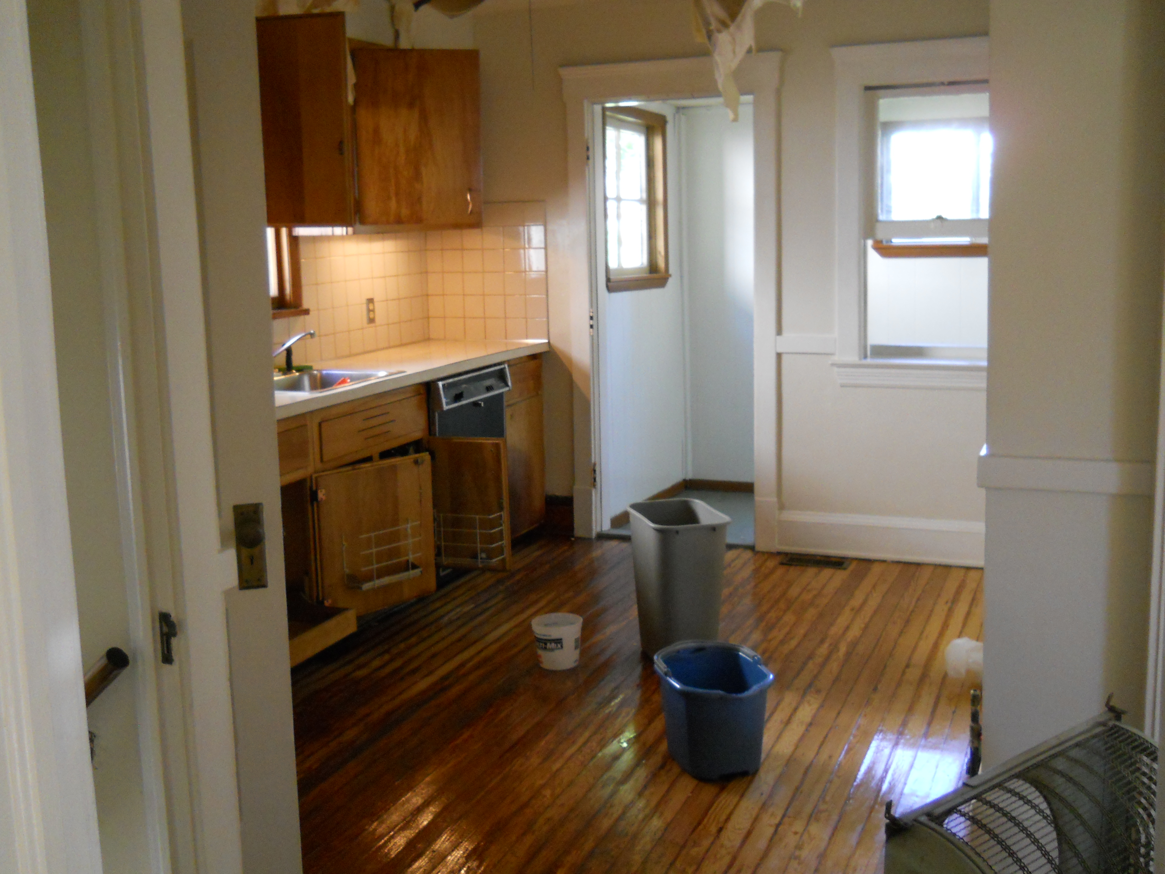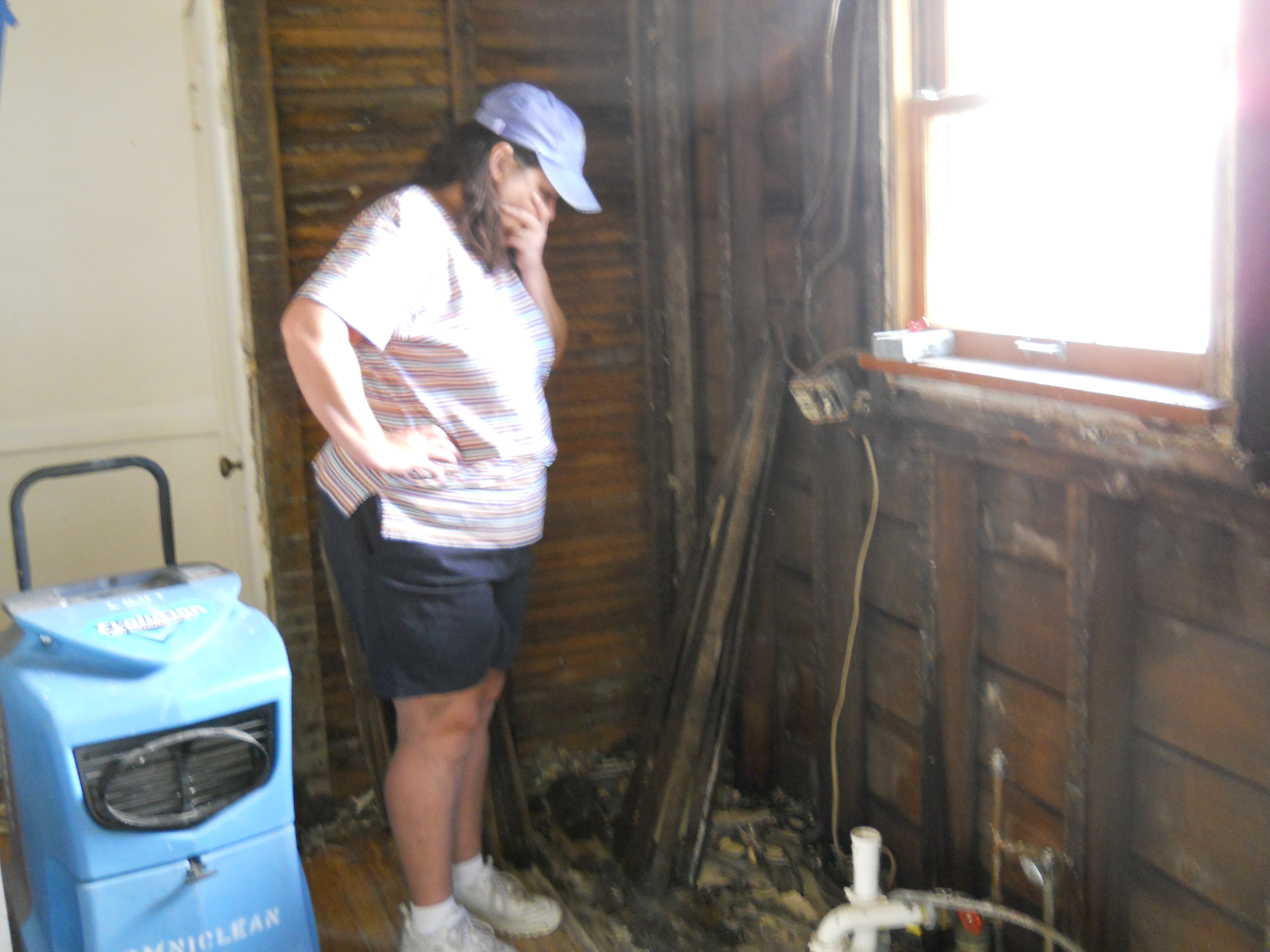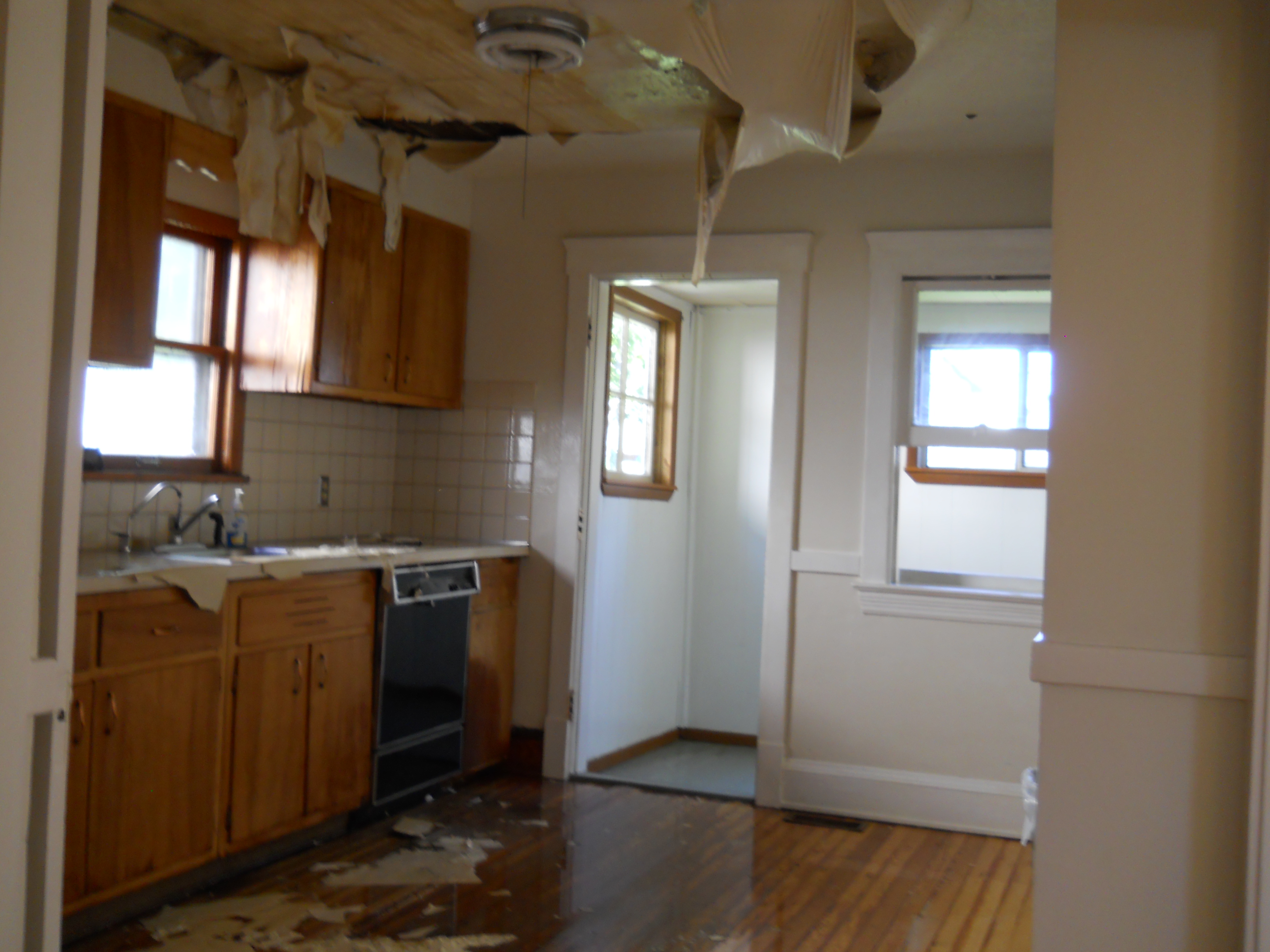The entire kitchen ceiling eventually wound up on the floor. The floor itself, buckled pretty badly, 1/2″ plus. The counter top swelled and warped. The window wouldn’t open. The cabinets were popping apart before my eyes. The electrical circuit breakers popped. The dishwasher was filled with sludge. Tiles and paint were popping off the walls. There was a water fall down the basement stairs. The rooms in the basement were an inch deep in water. The upstairs bathroom floor was buckled as well. This was not a good day.